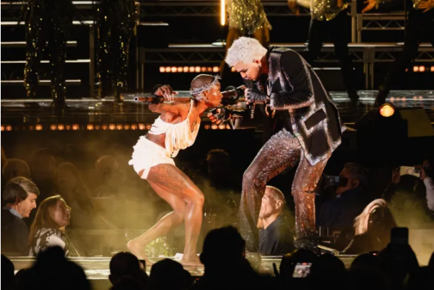 The night had many hiccups when it came to sound production, the most notable being when Erivo was not given a mic upon her reentrance to the stage to start “The Last Supper.” The audience could see Erivo singing but could not hear her. Fellow actors also appeared a bit thrown off, and Lambert handed her his microphone. Lambert’s microphone also didn’t work, at which point Erivo puts her palm up as if to tell the audience “hold.” She and other actors looked around for a bit until someone ran onto the stage and handed her a microphone. She looked back at the conductor and patted her head to signal the orchestra to start from the top of the number, and the conductor obeyed. This error could have been prevented by the use of lav mics. Still, errors are not entirely about what went wrong, but about how one bounces back, and Erivo’s leadership allowed her and her castmates to bounce back into the number.