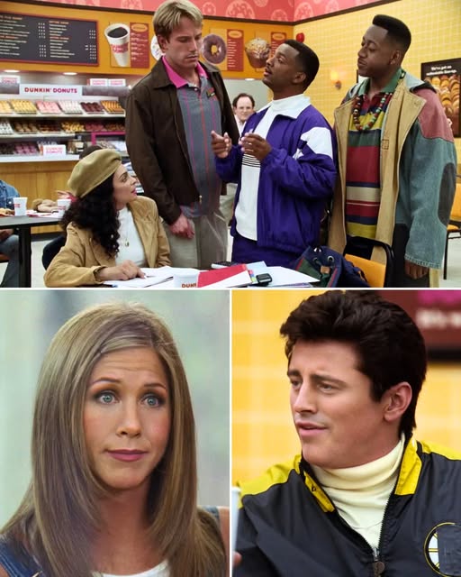 As all the men rush over to her table, Affleck delivers LeBlanc’s iconic line, “How you doing?” earning his praise, before Ribeiro pulls out a photo of Jennifer Aniston and reminds Affleck’s Hunting that he has a girlfriend.